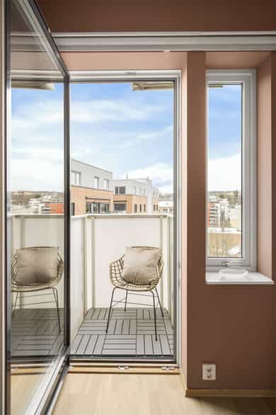 • Stor, sydvendt balkong med hyggelig utsyn mot bilfritt gårdsrom