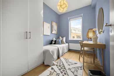 Moderne og gjennomført 4-roms selveierleilighet med høy standard, to balkonger og attraktive fasiliteter. Kværnerbyen er "byen i byen" med alt du trenger i umiddelbar nærhet og et godt kollektivtilbud. Det er et fantastisk sted å bo for deg som ønsker kort vei til naturen med Svartdalsparken og Ekeberg i nærheten.
