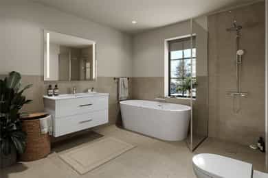 Villa Voksen er et eksklusivt boligprosjekt bestående av tre innholdsrike eneboliger med moderne og særpreget arkitektur, tegnet av anerkjente Gedde Dahl Arkitekter. Prosjektet er beliggende i et veletablert område på Voksen, kjent for sin sjeldne kombinasjon av naturskjønne omgivelser og nærhet til byens beste fasiliteter. Her bor du med kort vei til kollektivtransport, gode skoler og et variert servicetilbud, samtidig som området oppleves rolig og grønt. Se ellers prosjektets hjemmeside: https://bomer.no/prosjekt/villa-voksen/ Boligene kombinerer et klassisk uttrykk med moderne komfort. Store vindusflater gir rikelig med naturlig lys og skaper en sømløs overgang mellom inne og ute. Hver bolig har flere innbydende uteplasser som er naturlig integrert i arkitekturen, med skjermede hager og terrasser som gir gode solforhold, utsikt og privatliv. Prosjektet kjennetegnes av gjennomgående materialvalg og løsninger av høy kvalitet, med fokus på funksjonalitet, varighet og hverdagskomfort. Innendørs garasjeanlegg, enkelte med direkte adkomst til bolig, optimal plassering i terrenget samt master soverom med walk-in garderobe og en-suite baderom bidrar til et helhetlig og kvalitetsfullt bomiljø. Høydepunkter: - Klassiske og stilfulle eneboliger av god kvalitet. - Underjordisk garasjeanlegg. - Dokumentavgift av tomteverdi. - Eksklusive detaljer og løsninger. - Beliggenheten er ideell for barnefamilier som ønsker kort vei til naturen, samtidig som Oslo sentrum er lett tilgjengelig. - Mulighet for tilvalg*. - Familievennlig. Velkommen til Villa Voksen - et hjem for deg som verdsetter arkitektur, komfort og beliggenhet. Hvorfor kjøpe nytt? - Boligen er i forskriftsmessig stand med mange års reklamasjonsfrist. - Utbygger stiller med garantier i inntil fem år. - Lavere dokumentavgift. - Energiøkonomiske og klimavennlige løsninger. - Tidsriktige materialer og høy bokomfort. - Innflyttingsklar uten tanke på å måtte pusse opp først. - Det er svært lite vedlikeholdskostnader i nær framtid. Uteområde Området er etablert og barnevennlig, med kort vei til flotte tur- og friluftsmuligheter i marka. Sameiet vil bestå av tre eneboliger i klassisk uttrykk. Boligene oppføres i spennende arkitektur, med store vinduer og sorte karmer for et gjennomført uttrykk. Uteområdet blir opparbeidet og vil hovedsakelig bestå av grusede internveier og ferdigplen. Tilvalg De fleste ønsker å sette sitt personlige preg på boligen, og avhengig av hvor langt vi har kommet i byggeprosessen når avtale om kjøp inngås, er det muligheter for å endre, oppgradere eller påvirke materialvalg. Disse boligene har alle mulighet for hybel i første etasje – mot pristillegg under tilvalgsrundene. Ta gjerne kontakt med megler for en hyggelig prat og ytterligere informasjon. Selger/Utbygger: Arnebråtveien 137 AS, Org.nr: 929 642 112. Selskapet er opprettet med det formål å utvikle og bygge boligene i prosjektet Villa Voksen. Selskapet er heleid av BoMer AS, Org.nr: 919 041 285. Om BoMer: BoMer AS ble etablert av Marcus Engebretsen i 2017 med visjonen om å tenke utenfor boksen og utfordre tradisjonelle måter å tenke på. Vi utvikler boliger og boligområder fra uregulert tomt til nøkkelferdige hjem, med et sterkt fokus på kvalitet og stolthet - både for oss selv og for våre kunder. Eierstruktur BoMer eies 42,3 % av Cassinis AS, som igjen er eid av JMT Holdco AS - et selskap tilhørende Marcus Engebretsen og hans familie. Wilhelmsen-familien er også en sentral partner, med en eierandel på 57,74 % gjennom Skips AS Tudor, og bidrar med en solid kapitalbase. Innhold: Arealer: Hus 2: Kjellerplan: 30,1 m² (Bod, vaskerom/teknisk, kott og sluse). 1. etasje: BRA-i: 72,2 m² (Stue/Kjøkken/Spisestue, WC, Entré). 2. etasje: BRA-i: 72,2 m²(Fire soverom, to bad, gang). Sum: BRA-i: 174,5 m². Hus 3: Kjellerplan: 38,8 m². (2 boder, bad, kott og hall). 1. etasje: BRA-i: 72,1m² (Stue/Kjøkken/Spisestue, WC og entré) 2. etasje: BRA-i: 72,1 m² (Tre soverom, TV-stue og to bad). Sum: BRA-i: 183 m² Entré: Boligene får en innbydende og funksjonell entré med lyse fliser i størrelsen 60x60 cm, kombinert med varmekabler som gir en lun og velkommende atmosfære. Ytterdøren leveres i svart med ett glass, i slett og glatt finish, og er utstyrt med en FG-godkjent lås. Vegger, tak og vinduer får en elegant, listefri overgang. Hver bolig vil være utstyrt med Futurehome Smarthub II - hjernen og hjertet i fremtidens hjem. Boligen får også 15 Futurehome-dimmere, og alle rom utenom badet vil ha ett takpunkt som er klargjort for montering. Foruten entré, toalett og bad, får alle rom gulv i 1-stavs børstet, mattlakkert eikeparkett. Trappen leveres med åpne trinn i hvitlasert eik og hvitmalt rekkverk, håndløper og spiler. Stue og kjøkken: Hver bolig er utformet med nøye gjennomtenkte løsninger som fremhever det aller beste. Kjøkken og stue er plassert i en åpen og sosial løsning som strekker seg over store deler av 1. etasje. Dette gir mulighet for fleksibel møblering i flere soner, samtidig som den åpne løsningen skaper en luftig og romslig følelse. I stuen vil det også bli plassert en klassisk av typen Visionline s40-1 med sort glass i dør, som bidrar til en lun og hyggelig stemning. Fra allrommet er det utgang til utearealene, noe som gjør det enkelt å nyte måltider utendørs i sommerhalvåret. I husets hjerte vil det ikke spares på detaljer eller kvalitet. Kjøkkenet leveres av JKE Design til en verdi av kr. 200 000,-. Kjøperen får muligheten til å tegne sitt eget kjøkken og kan velge å justere innenfor den fastsatte rammen, for egen regning. Kjøkkenet leveres med kvalitetshvitevarer fra Siemens, samt kjøkkenkran av Tapwell, et navn som er synonymt med både kvalitet og design. Bad og WC: Boligene inneholder to bad i andre etasje og et toalett i første etasje, begge badene er utformet med fokus på kvalitet og tidløs estetikk. Flisene er av typen Azuma UP, og leveres i størr