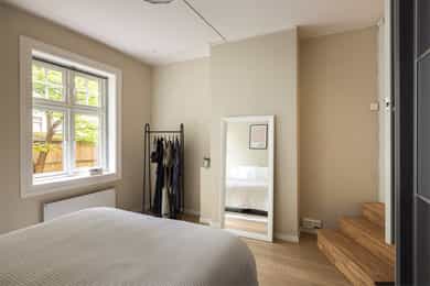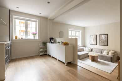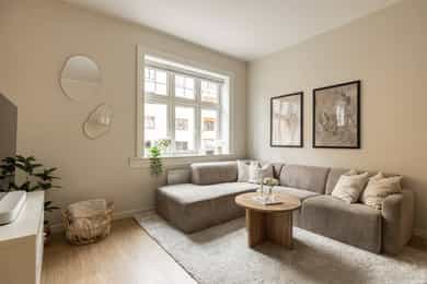 Gjennomgående og romslig 3-roms i klassisk bygård med attraktiv beliggenhet mellom Torshov og Grünerløkka! Velkommen til en unik og sjarmerende leilighet med særpreg! Boligen ligger høyt og skjermet til i bygårdens 1. etasje, og kombinerer klassisk gårdsarkitektur med moderne løsninger og en spennende planløsning over to nivåer. Her får du romslige oppholdsrom, gode lysforhold og en behagelig atmosfære. Kort fortalt: - Gjennomgående leilighet i høy 1. etasje - Peisovn - Varmtvann og internett inkl. i fk - Idyllisk bakgård med felles terrasse - Spennende planløsning med nivåforskjeller som skaper naturlige soner - Rørfornying i 2020 - Vinduer fra 2018 som isolerer godt Her får du en sentral beliggenhet med kort vei til koselige kafeer, spisesteder og offentlig kommunikasjon.