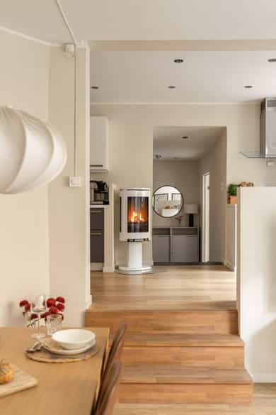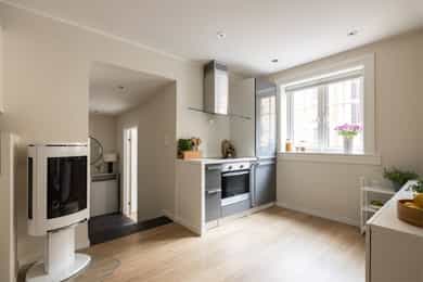 Unik og stor 3-roms over to nivåer i høy 1. etg | Peisovn | God takhøyde (2,8m) | Soverom mot bakgård | V.vann inkl.