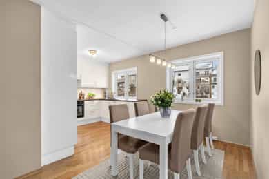 En herlig og stor hjørneleilighet beliggende i et populært og attraktivt boligområde. Leiligheten ligger i naturskjønne og barnevennlige omgivelser på Disen ved Lillomarka. Eikelundveien 21 har en en meget god beliggenhet, tilbaketrukket og omkranset av grøntareal. Kvaliteter: - Pen og velholdt leilighet - Hovedsakelig oppusset i 2011 - En herlig, stor, lys og flott hjørnestue - Godt kjøkken med god spiseplass - Solrik, sydvendt balkong på ca. 8 m² m/utgang fra stue - Fritt og fint utsyn, uten innsyn - Svært barnevennlig - Super beliggenhet i blindvei - stille og rolig! - En garasjeplass medfølger - 2 gode boder, felles sykkelbod, fellesvaskeri m.m - Veldrevet sameie - Gode kollektivmuligheter, inkl. nattbuss til Årvoll - Nærhet til Lillomarka med fantastiske tur- og skimuligheter