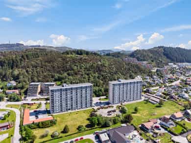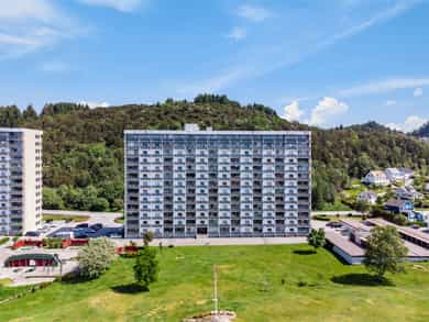 Espen Bergtun v/Nordvik Bolig har gleden av å presentere Fjellvegen 33 - En tiltalende 2-roms leilighet i 12.etg m/stilige fargevalg og en god planløsning. Her har en sør-vestvendt balkong m/gode solforhold, samt en fantastisk utsikt få kan overgå. Leiligheten har nærhet til bussforbindelser, turområder, butikk, skole og Haugesund sentrum m/alle fasiliteter. - 1 soverom av stor størrelse m/2 garderober - Praktisk innvendig bod til lagring + bod i kjeller - Moderne tidløst kjøkken - Innbydende bad fra 2015 - Stue med plass til spise- og sittegruppe - Balkong på 6 kvm m/plass til utemøbler - Ingen dokumentavgift Velkommen til visning!