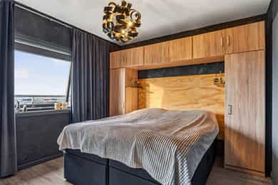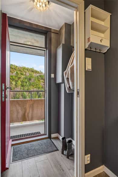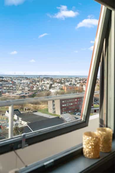S T U E Stue av god størrelse med plass til blant annet spisegruppe og sofagruppe m/tv-benk. Ellers god plass til diverse inventar/møbler. Store vindusflater som gir rikelig med naturlig lysinnslipp, samt en vidunderlig utsikt rett fra sofaen. K J Ø K K E N Stilrent kjøkken med god skap- og benkeplass til det kjøkkenutstyret en skulle trenge. Inneholder oppvaskmaskin, vask, vifte, steketopp og stekeovn. Rommet er ellers innredet med ekstra benkeplate ved vinduet med praktisk oppbevaringsplass - Her kan en alternativt ha en mindre spisegruppe. B A D Innbydende bad fra 2015 med vinylbelegg på gulv og baderomsplater på vegg. Varmekabler i gulv. Inneholder dusjkabinett, gulvstående toalett, opplegg/plass til vaskemaskin/tørketrommel og baderomsinnredning m/servant. S O V E R O M Stilfult soverom av god størrelse med plass til stor seng. Her har en en praktisk garderobe ved sengen, samt skyvedørsgarderobe med plass til dine alle dine antrekk. Rommet har direkte adkomst til bod med gode lagringsmuligheter. Godt med naturlig lysinnslipp, samt utsikt rett fra senga. E N T R E + G A N G Entre med plass til å henge fra seg yttertøy og plassere sine sko. El-skap er montert i entrè. Øvrig gang med plass til diverse møblement. B O D 1 stk bod ved soverom og 1 disponerer 1 bod i kjeller på Ca. 4 kvm. B A L K O N G Balkongen har en sør-vestvendt plassering og er på Ca. 6 kvm. Her har en plass til diverse utemøbler og har gode solforhold og en praktfull utsikt over Haugesund m.m.