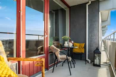 Balkongen har en sør-vestvendt beliggenhet og gode solforhold.