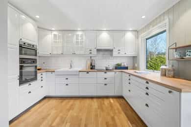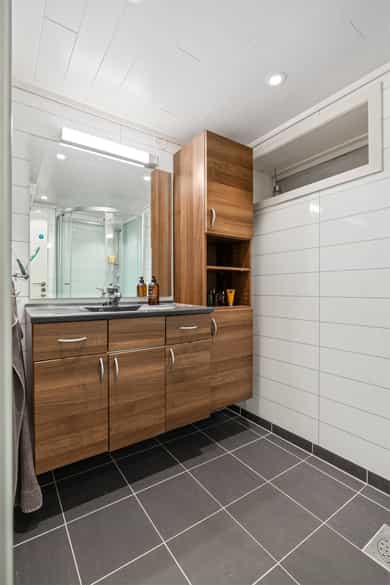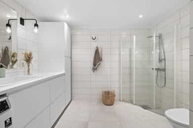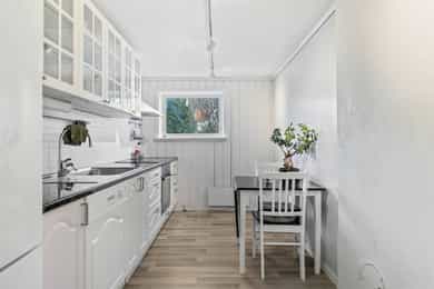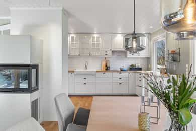 Innholdsrik enebolig med mange muligheter – fleksibel planløsning og god romfordeling. Velkommen til en pen og velholdt enebolig med stort potensial! Her får du en praktisk bolig med god plassfordeling over to plan, og en planløsning som enkelt kan tilpasses ulike behov – enten du ønsker en generasjonsbolig, bolig med hybel eller en stor enebolig. Boligen har vært igjennom flere oppgraderinger både utvendig- og innvendig og holder en normalt god standard og gir et godt helhetsinntrykk. Boligens generelle standard i de ulike rom er som følger; Entré: Hoveddelen av boligen har inngang i første etasje. Entréen er innbydende med store, lyse fliser på gulvet og malte panelvegger/tak. Det er god plass til skohyller med mer, og rommet har også plassbygde garderobeskap. I tillegg har boligen egen inngang til hybelen i kjelleretasjen. Stue og kjøkken: Boligen har stue og kjøkken i delvis åpen løsning - et romslig allrom og naturlig samlingspunkt for familien. Rommet har generøse vindusflater på to sider, noe som gir et flott gjennomlys, og det er i tillegg utgang til stor terrasse. Midt i rommet er det montert en stemningsfull og moderne peisovn for ekstra varme og hygge. Det er også installert varmepumpe i 2022. Gulvet har parkett, og øvrige overflater har malt panel i en dus og moderne fargetone, sparklet og malt i 2021. Kjøkkenet har en stilren og takhøy innredning fra 2015 som kler boligen godt. Innredningen består av vitrineskap, lyse, profilerte fronter og en heltre benkeplate med dobbel, nedfelt oppvaskkum. Over deler av benken er det vindu mot egen hage, noe som gir litt ekstra arbeidslys på dagtid og et hyggelig utsyn mot egen hage. Det er også montert downlights i taket som gir godt med arbeidslys. På veggen mellom benk og overskap er det fliser. Hvitevarene er integrerte og består av stekeovn (2021), mikrobølgeovn, platetopp, oppvaskmaskin (2021) og kjøle/fryseskap. Over kokesonen er det ventilator. Spisestuen kan praktisk plasseres i tilknytning til kjøkkenet og har god plass til å samle både familie og venner for hyggelige sammenkomster. Kjellerstue: I tillegg har boligen en koselig kjellerstue, noe som gir litt ekstra spillerom for familien. Kjellerstuen har laminatgulv, malte vegger og god plass til møblement. Det er også montert varmepumpe i rommet i 2022, noe som bidrar til en behagelig innetemperatur året rundt. Bad/wc/vaskerom: Det er to bad i boligens hoveddel, ett i hver etasje. I tillegg er det wc-rom i første etasje. Badet i kjelleretasjen ble pusset opp i 2016 og er flislagt både på gulv- og vegger. Det er gulvvarme, downlights og avtrekksvifte. Rommet har også opplegg for vaskemaskin, og det er avsatt plass til det i innredningen. Innredningen består av en benkeplate med oppvaskkum, underskuffer og matchende veggskap. I tillegg har badet toalett samt et dusjhjørne med innfellbare glassvegger. Badet i første etasje ble smakfullt pusset opp i 2024. Rommet har store, lyse fliser på gulv og vegger, samt gulvvarme, downlights og avtrekksvifte. Innredningen består av en heldekkende servant med underskuffer og matchende veggskap. Over servanten er det speil med integrert belysning. Badet har også et romslig dusjhjørne med regnfallsdusj, hånddusj og glassvegg. Soverom og garderobe: Boligen har tre fine soverom i første etasje. Alle rommene har parkettgulv, pent malte panelvegger og lysmalt paneltak. To av soverommene har garderobeskap, og hovedsoverommet har i tillegg utgang til egen luftebalkong. Boligen har også garderobeskap i entréen, samt lagringsplass både i boligen, på loft og i garasjen. Hybel: Deler av boligens kjelleretasje er innredet med en hybel med egen inngang fra baksiden. Hybelen inneholder stue, kjøkken, soverom, bad og wc/vaskerom. Stuen er koselig med laminatgulv og lysmalte vegger. Det er god plass til sofa, og det er plass til et lite spisebord på kjøkkenet. Kjøkkenet er fra 2009 og innredningen består av vitrineskap og øvrig innredning med lyse, profilerte fronter. Laminert benkeplate med benkebeslag/oppvaskkum. Det er montert flisplater på veggen mellom benk og overskap. Over kokesonen er det ventilator. Hvitevarene er integrerte og består av stekeovn, platetopp og oppvaskmaskin. Det er også plass til kjøleskap. Badet i kjelleretasjen tilhørende hoveddelen er fra 2009 og har grå fliser på gulvet, lyse flisplater på veggene, gulvvarme, dusjkabinett og servantinnredning. Innredningen består av en heldekkende servant med underskap, skuffer og matchende veggskap. Over servanten er det speil og lys. Tilstandsrapport for boligen er vedlagt salgsoppgaven. Se denne for nærmere informasjon om tilstandsgrad.