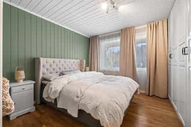 I familievennlige omgivelser på Arås ligger denne velholdte eneboligen fra 1980. Boligen ligger fint plassert på en romslig tomt på ca. ett mål, med stor veranda og skjermet hage. Frittliggende dobbelgarasje med gode parkeringsmuligheter. I boligens kjelleretasje er det en innredet del (hybel) med egen inngang, bad, soverom, stue og kjøkken. Hoveddelen av boligen har inngang i første etasje, med et nyoppusset bad (fra 2024), wc-rom, tre soverom og stue/kjøkken i åpen løsning. I stuen er det både peisovn og varmepumpe (luft-til-luft). Videre er det et stilrent, moderne kjøkken med integrerte hvitevarer både på hovedkjøkkenet og delvis på kjøkkenet i hybelen. Hoveddelen av boligen har også et lekkert bad/vaskerom og koselig kjellerstue i kjelleretasjen - perfekt for storfamilien.