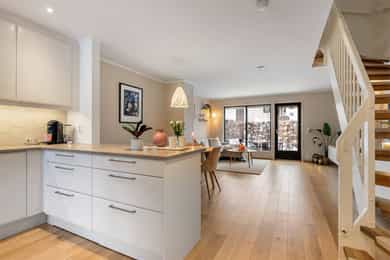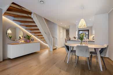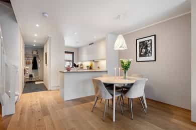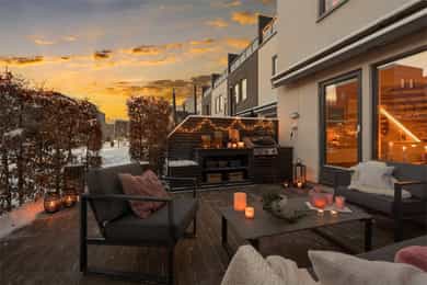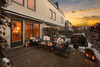 Velkommen til Møllerløkka 49 - Et moderne og lekkert rekkehus fra 2019, som strekker seg over tre etasjer. Attraktivt og barnevennlig boligområde på Vøyenenga i Bærum. Boligen har en svært sentral beliggenhet med kort vei til barnehage, skoler, dagligvarebutikk og offentlig kommunikasjon. For den aktive familien byr nærområdet på flotte tur- og rekreasjonsmuligheter med nærhet til marka. Dette er en bolig som må oppleves! Kort fortalt: - Flott kjøkken med integrerte hvitevarer - Pent og arealeffektivt bad + WC/gjestetoalett - Takterrasse og terrasse med svært gode solforhold - Automatiske markiser i 1. og 3. etasje - Parkering m/ lader - Svært barnevennlig - Barnehage og butikk i umiddelbar nærhet - Aktivitetspark og Kirkerudbakken ligger like utenfor hagebyen