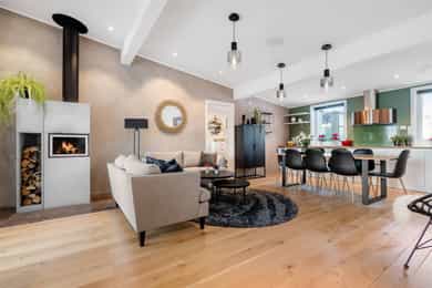 Velkommen til Kapstøveien 1D – en innbydende bolig med praktisk planløsning over to plan, beliggende i rolige og naturskjønne omgivelser i Saltstraumen. Boligen inneholder tre soverom, bad, vaskerom og en romslig stue med åpen kjøkkenløsning. Fra stuen er det utgang til en koselig balkong på 7 m² med flott utsikt mot verdens sterkeste malstrøm. Eiendommen har gode oppbevaringsmuligheter med flere boder. Beliggenheten byr på nærhet til sjø, flotte turområder, skole, barnehage, dagligvarebutikk og kollektivtransport – perfekt for deg som ønsker et rolig, men levende nærmiljø. - Flott utsikt mot Saltstraumen - Praktisk planløsning over to plan - 3 soverom - Garasje og flere boder - Kort vei til skole, barnehage og butikk - Naturnært og barnevennlig område
