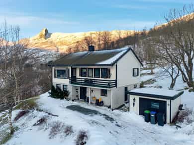 Eiendom med flott beliggenhet på høyden i et rolig boligområde i Glomfjord, Meløy kommune. Her er det kort vei til både skole og barnehage, butikker og kun 5 min gange busstopp, samt fine turområder. Velholdt familiebolig med flere oppholdsrom og oppbevaringsmuligheter. Gode romløsninger som inneholder: Entre, 3 soverom, to bad, et godt utbygget kjøkken fra 2018 og en luftig stue/spisestue med store vindusflater som byr på utsikt. Videre er det en ekstra stue i underetasjen, kontor/rom, vaskerom og flere boder. Boligen har to vedovner. Sørvendt solrik utsiktstomt med opparbeidet hage, veranda og terrasse. God parkeringsmuligheter på tomt og elbil-lader. Velkommen på visning, ta kontakt med megler på 416 81 773.