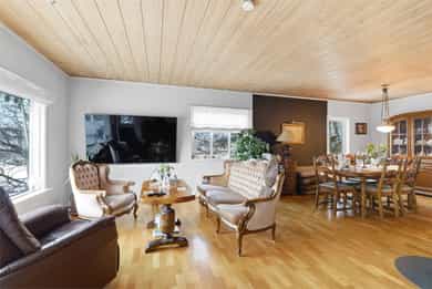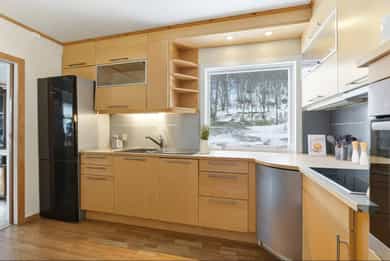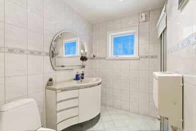 En familievennlig enebolig over to etasjer, beliggende i et rolig og etablert boligområde. Huset fremstår som godt vedlikeholdt, alder tatt i betraktning. Familievennlig bolig med gode romløsninger med flere oppholdsrom, gode oppbevaringsmuligheter og koselig hage. Entre/gang: Vi blir ønsket velkommen inn i entre av åpen løsning med stue i underetasje. Gode oppbevaringsmuligheter i skyvedørsgarderobe med rikelig plass til yttertøy og sko, og det er vedovn i rommet. Fra entréen/stue er det adkomst til vaskerom, bad, soverom, kontor og boder. Stue: I andre etasje finner du en luftig stue med ulike soner og nøytrale fargevalg. Det er også store vindusflater som byr på mye lys og utsikt. Stuen kan byr på utsikt mot både hav og fjell, spesielt ved fjerning av flere busker som i dag kan skjerme bort deler utsikten. Stuens gode gulvflater gir god plass til sittegrupper, her er det plass til sofa, god stoler, spisebord med mer. Midt i rommet er det en vedovn. Ekstra stue i underetasje som gir god plass til hele familien. Fra stue er det utgang til en solrik veranda med utsikt, samt romslig terrasse. God plass til hyggelige sammenkomster, og gode solforhold store deler av dagen. Stort hage område der barna kan løpe og kose seg. Kjøkken: Kjøkken er delvis separat fra stue/spisestue, med ankomst fra spisestue/stue og gang. Kjøkkenet er fra 2018 og er av en fin størrelse i eikeutførelse kombinert med laminat benkeplate. Her er det gode oppbevaringsmuligheter i innredningens flere takhøyde overskap -og skuffer. Det er integrerte hvitevarer (stekeovn, oppv, platetopp) fra 2018, stekeovn i praktisk høyde. Ellers er det innredet med to kummer og avrenningsfelt, samt ventilator over platetopp med avtrekk ut. Kjøkkenet byr på vindusflater og det er fin plass til frokostbord. Bad/Våtrommer: Boligen har to bad og vaskerom. Bad 2.etg: Hovedbad innredet med en lyse veggfliser, fliser på gulv med termostatstyrt varme. Det er svært gode oppbevaringsmuligheter i innredning med servant. Badet er av en fin størrelse og videre innredet med dusjnisje, Tylø steamdusj og wc. Badet har elektrisk styrt baderomsvifte. (Ref. tilstandsrapport: Hulltaking ikke foretatt pga tilliggende konstruksjoner. Målt med fuktindikator der det var mulig å komme til, på vegger tilstøtende rom med rør føringer, ingen avvik registrert. Sjekket også himling under, uten avvik registrert på befaringstidspunktet). Bad 1.etg/underetasje: Bad med lyse fliser på vegger og mørke fliser på gulv med termostatstyrt gulvvarme. Badet inneholder vegghengt innebygd wc, innmurt badekar og innredning med heldekkende servant. (Hull for inspeksjon og måling allerede laget, og ingen avvik ved inspeksjon og fuktmåling. Ikke utslag på fuktmåler ved piggmåling bunnsvill). Vaskerom: Vaskerom i underetasje der det er utført lettere oppussing i senere tid iht. tilstandsrapport. Rommet inneholder skyllekar, opplegg for vaskemaskin og 200l VV bereder, samt veggovn. (Hulltaking ikke nødvendig da alle vann/avløpsrør ligger utenpå vegg). Soverom: Boligen har 3 soverom av gode størrelser, pluss et ekstra rom/kontor. Rommene er godt innredet med garderobeskap og har plass til seng med mer. Boligen har flere boder, samt garasjen som gir også gode oppbevaringsmuligheter. Huset har godt med skyvedørsgarderober og garderobeskap. Forøvrig: Røykvarlsere og brannslukker. VVB på vaskerom. Huset har sentralstøvsuger. Støpejern avløpsrør noe oppgradert med plast. Kobber vannrør. Stengekran kjeller. Utvendig bakkekran utenfor inngang. Det er i forbindelse med salget utarbeidet en tilstandsrapport fra bygningssakkyndig. Tilstandsrapporten er en teknisk gjennomgang av boligen med oppdagede avvik. Forhold som har fått TG2 og TG3 må gjennomgås nøye, da disse indikerer avvik fra normal slitasje og/eller høy alder, med mulig behov for utbedring: Bygningsdeler som har fått TG2: Taktekking - en del mose og grønske påvist. Veggkonstruksjon - Det er ingen eller liten lufting i nedre kant av kledning mot grunnmur. Det er værslitt/oppsprukket trevirke/trepaneler. Takkonstruksjon/Loft - Det er påvist avvik rundt gjennomføringer i takflaten. Dører - Det er påvist dører som er vanskelig å åpne eller lukke. Karmene i dører er værslitte utvendig og det er sprekker i trevirket. Balkonger - Rekkverket er for lavt i forhold til dagens krav til rekkverkshøyder. Det er værslitt/oppsprukket trevirke/trepaneler. Overflater - Noen små skader, eldre overflater og skade i belegg. Etasjeskille - For å få tilstandsgrad 0 eller 1 må høydeforskjeller rettes opp. Det vil imidlertid sjelden være økonomisk rasjonelt som et enkeltstående tiltak i en bolig som dette. Radon - Det er ikke foretatt radonmålinger. Rom Under Terreng - Det er gjennom hulltaking påvist fuktnivå inne i trekonstruksjonen i hulltakingen, men ikke påvist fuktskader i dette området. Innvendige trapper - Åpninger i rekkverk er større enn dagens forskriftskrav til rekkverk i trapper. Innvendige dører - Det er påvist avvik som tilsier at det bør foretas tiltak på enkelte dører. Bad overflater vegger og himling - Det er påvist at flisfuger har riss/sprekker og svertesopp i silikonfuger. Bad sluk, membran og tettesjikt - Membran kan ikke konstateres (ikke synlig og det foreligger heller ikke dokumentasjon). Bad sanitærutstyr og innredning - Det er påvist skade på innredning. Bad venilasjon - Våtrommet mangler tilluftsventilering, f.eks. spalte/ventil ved dør. Kjeller bad, overflater vegger og himling - Sopp/flekket himling. Bom i flis, knust flis og løse fliser. Kjeller bad, overflater Gulv - Slett gulv uten fall mot sluk. Ikke 25mm høydeforskjell topp sluk/topp flis ved terskel. Kjeller bad, sluk, membran og tettesjikt - Membran kan ikke konstateres (ikke synlig og det foreligger heller ikke dokumentasjon). Sanitærutstyr og innredning - Det er manglende tilkomst og ventilering under innmurt badekar. Kjøkken, overflater og innredning - stedv
