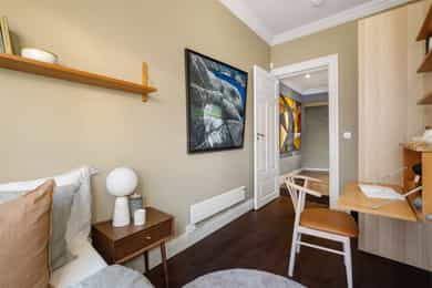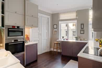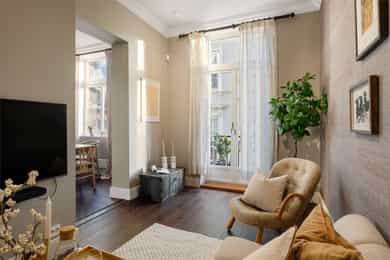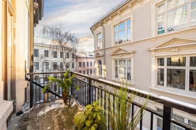 Lys, klassisk og pen hjørneleilighet i byggets 3. etg med heis i attraktiv bygård. To adskilte stuer som gir fleksible soner for både opphold og sosialt samvær, hvor den ene har utgang til balkong. Leiligheten ble pusset opp i 2023 med oppgradering av kjøkken, vegger, tak, lister, farger og tapet, samt etablering av plassbygde garderobeløsninger. Badet ble pusset opp av faglært i 2014, og det er i tillegg et separat toalett. En gjennomført bolig med klassisk preg, stor takhøyde, god romfølelse og attraktiv beliggenhet. Høydepunkter: -Klassiske detaljer -To stuer med fleksibel bruk -Balkong med utgang fra stue -Peis -Bad og separat toalett, begge med gulvvarme -Heis i bygget (2016) -Nytt taktekke på bygården (2023) -Internett og v. vann ink. i felleskost -10P-plasser etter venteliste