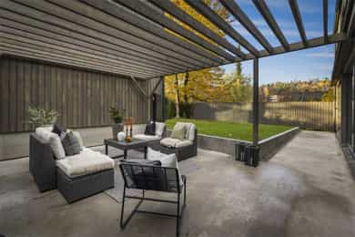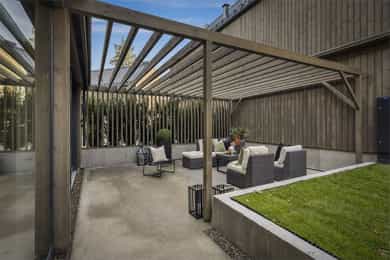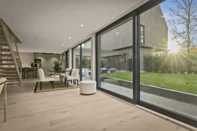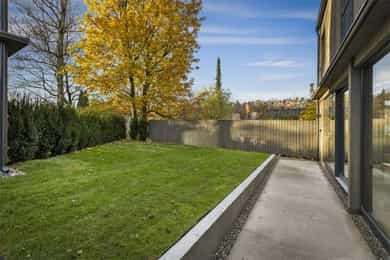 Ny, eksklusiv og arkitekttegnet enebolig med påkostede løsninger. Flat og solrik hage m/ pergola. Garasjeplass + p-plass