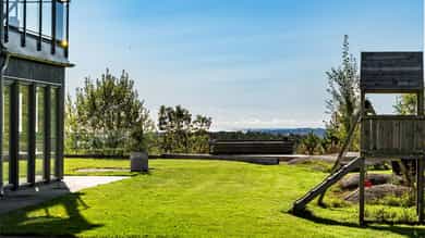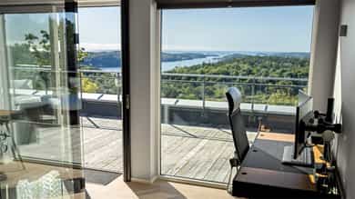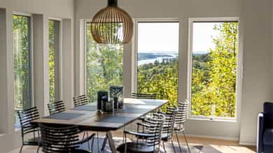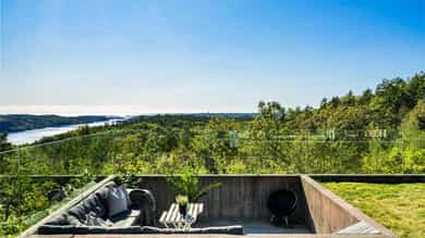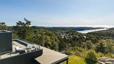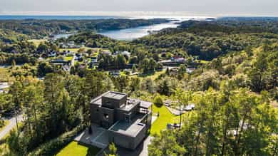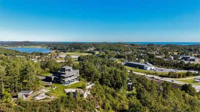 Eksklusiv enebolig på toppen av Grimstad med over 18 mål tomt - utsikt mot Vikkilen og havet