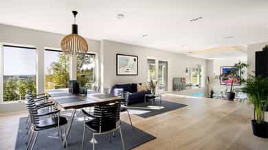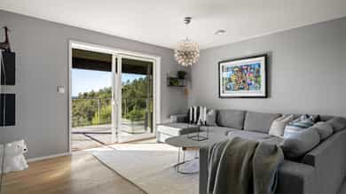 Stor enebolig med høy standard og enestående beliggenhet på toppen av Grimstad. Her får du panoramautsikt over byen, Vikkilen og havet – en slik utsikt er sjeldent til salgs. Boligen holder høy standard med to bad, spa-avdeling og flere romslige oppholdsarealer. Motstrømsbasseng med foldedører ut mot hagen gir en unik kombinasjon av velvære og funksjonalitet. Stor takterrasse gir sol og utsikt hele dagen, og integrert garasje med direkte adkomst inn i boligen. Eiendommen har en romslig tomt med gode utearealer. En sjelden mulighet til å skaffe seg en moderne bolig med utsikt, areal og kvaliteter langt over det vanlige. Denne boligen må oppleves!