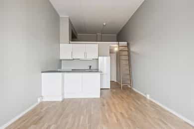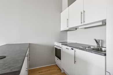 Gudes gate har en svært sentral beliggenhet i Moss sentrum, med enkel adkomst til leiligheten i 3. etasje via heis eller trapper. Vel inne møtes man av en lys entré med plass til oppbevaringsmøbel samt porttelefon for enkel adgang for besøkende. Stuen har hvitmalte vegger og 3-stavs parkett på gulv. Rommet har plass til sofagruppe og øvrig møblement, og fungerer som leilighetens naturlige oppholdsrom. Store vindusflater gir godt lysinnslipp, og fra stuen er det utgang til balkong på 5 kvm. Balkongen er belagt med terrassebord og har rekkverk i stål og glass, som gir utsyn mot nærområdet. Leiligheten har i tillegg tilgang til felles takterrasse Kjøkkenet er plassert i åpen løsning mot oppholdsrommet og har en praktisk utforming med innredning på to sider. Innredningen har hvite, slette fronter kombinert med grå laminat benkeplate. Det er godt med skap- og benkeplass for oppbevaring og matlaging. Hvitevarer består av komfyr og innebygget oppvaskmaskin. Over kokesonen er det kjøkkenventilator med avtrekk ut. Kjøkkenet har en effektiv planløsning som gjør det enkelt å etablere spiseplass i tilknytning til kjøkken og stue. Badet har flislagte overflater i lyse og nøytrale toner. Det er dusjnisje med kabinettdører, veggmontert toalett samt servantskap med nedfelt servant og ettgreps blandebatteri. Videre er det røropplegg for vaskemaskin. Fra oppholdsrommet er det adkomst til hems via stige. Hemsen har plass til seng og har åpen løsning mot stue- og kjøkkenområdet, noe som gir god oversikt og romfølelse. Arealet egner seg godt som soveplass eller alternativt til oppbevaring, avhengig av behov. Innvendige overflater: - Vegger med slettmalte overflater. - Gulv med 3-stavsparkett og fliser. - Malte flater i himling. Tekniske installasjoner: - Bolig ventilert ved tilluftventiler i yttervegger, mekanisk avtrekk kjøkken og baderom. - Felles varmesentral. Varmefordeling med vannbåren varme med radiator, elektrisk gulvvarme på bad. - El-anlegg fra 2008, el-skap med jordfeilautomater.