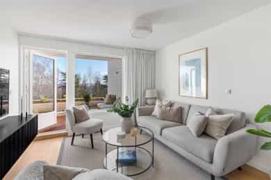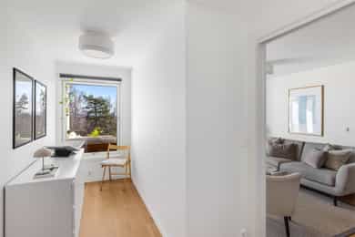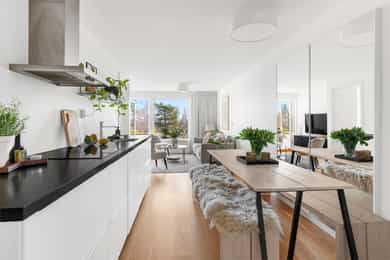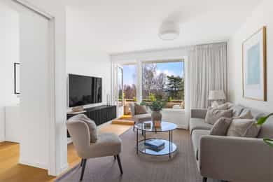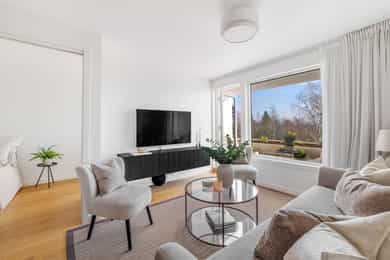 Gjennomgående 3-roms leilighet med usjenert balkong og grønt utsyn | Garasjeplass | Heis | Nær T-bane og fine turområder