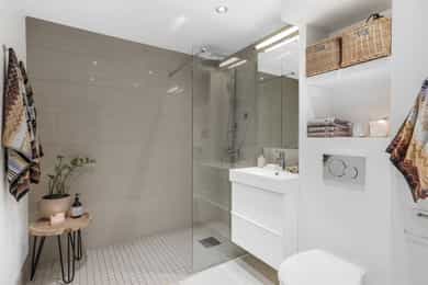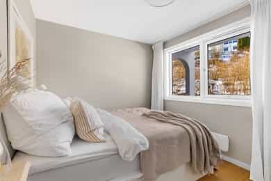 Lys og usjenert 3-roms leilighet med skjermet balkong og idyllisk utsyn. Leiligheten ble pusset opp og ombygget i 2014, og har et gjennomført interiør med pene overflater. Det medfølger garasjeplass og to boder. Rolig og tilbaketrukket i hyggelig sameie med store grøntområder og flotte turmuligheter. Praktisk og lettstelt nær buss, T-bane, treningssenter og servicetilbud.