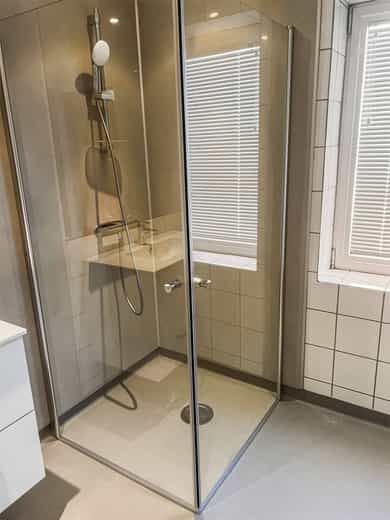 - Montert våtromsplater i dusjhjørnet. Utført av firma.