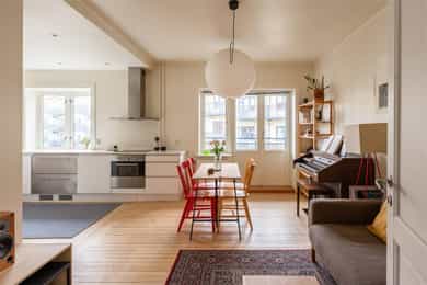 Velkommen til Christies gate 9! En nydelig 3-roms andelsleilighet med flott beliggenhet på øvre Grünerløkka, like ved Rodeløkka. Her bor du svært sentralt, men allikevel tilbaketrukket. Leiligheten har en gjennomgående og praktisk planløsning med gode lysforhold fra store vindusflater i alle rom. Romslig planløsning hvor stue og kjøkken ligger i en åpen og sosial sone, med to soverom og et pent bad. Utgang fra stuen til en flott balkong som vender mot en rolig bakgård. - God takhøyde og store vindusflater - Østvendt balkong på ca. 6m² - Sjarmerende tregulv - Varmtvann, fyring og internett inkludert i felleskostnader - En kjellerbod og en loftsbod - Ingen dok.avgift - Felles vaskeri i borettslaget - IN-ordning, mulighet til å nedbetale andel fellesgjeld - Alt du trenger, rett i nærheten!