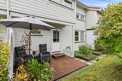 Attraktivt rekkehus over to plan med barnevennlig beliggenhet! Oppussingsobjekt - Solrike uteplasser - Garasje med lader