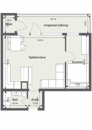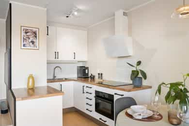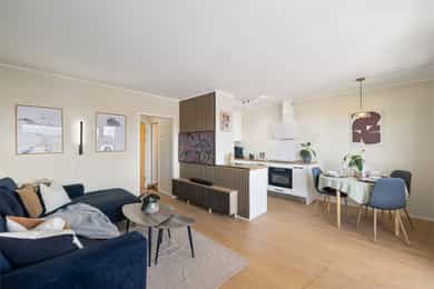 Lys og tiltalende 2-roms i 8. etasje | Solrik balkong på 9 m² med fjordutsikt | Heis | V.vann og fibernett inkl.
