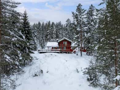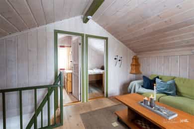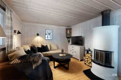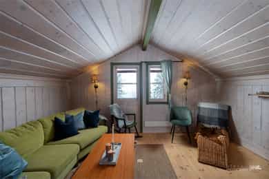 Innholdsrik laftehytte med anneks! Flott beliggenhet ved Noresund | 4 soverom, anneks, loftstue, peis & store uteplasser
