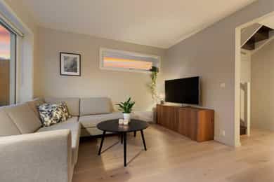 Lekkert enderekkehus med solrik og usjenert beliggenhet - Meget barnevennlig - 3 soverom - 2 bad - Carport m/lader