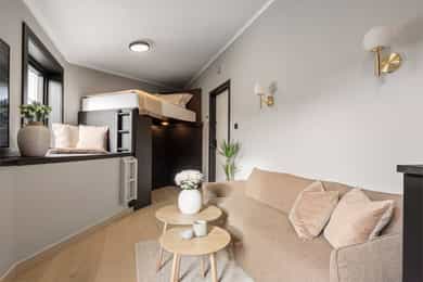 Lekker og delikat 1-roms toppleilighet - Arealeffektiv planløsning - Attraktiv og meget sentral beliggenhet - Selveier