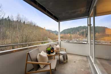 Nyoppusset gjennomgående 2-roms selveier i Markagrensen. Balkong. Garasje. Heis. Nymalt, nye gulv og kjøkken.