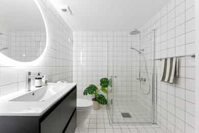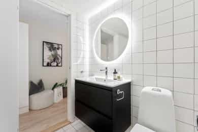 -Bad med innredning og opplegg for vaskemaskin