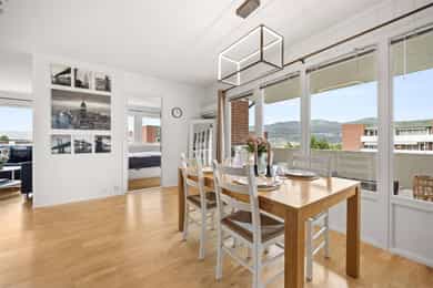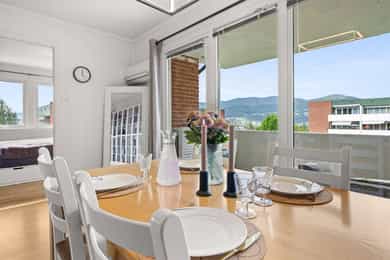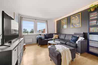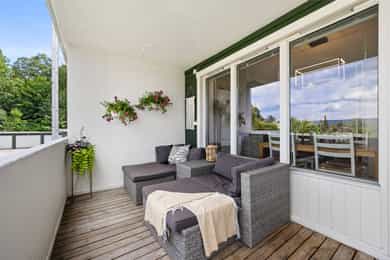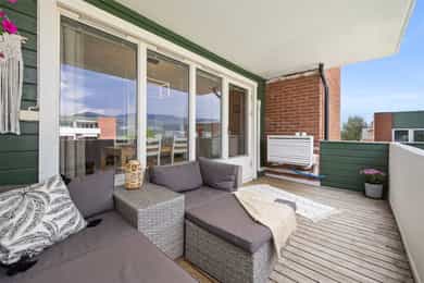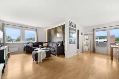 Lys og pen 3-roms i 2. etasje med stor balkong - Bad og toalett fra 2024 - Garasjeplass - Utsikt