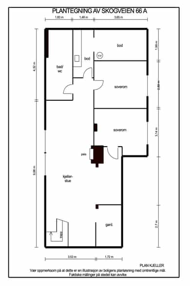 BRA-i: 91 kvm. Kjellerstue, garderobe, gang, bad/wc, 2 soverom og 2 boder.