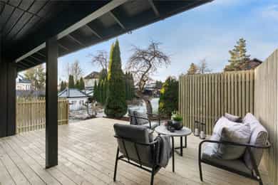 Stor, lekker og oppusset halvpart av vertikaldelt tomannsbolig. 5 sov, 3 bad og vaskerom. Peis. 3 p-plasser. Solrikt!