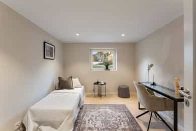 Flott beliggenhet med kombinasjon av sentrale og barnevennlige omgivelser, midt på ettertraktede Stabekk. Her bor du i et veletablert og familievennlig nabolag med kort vei til alt du trenger i hverdagen. Innen få minutters gange finner du både barnehager og flere av områdets mest populære skoler, blant annet Stabekk skole og Nadderud videregående. Dette gjør beliggenheten ideell for familier som ønsker en trygg og praktisk hverdag. Daglige ærender løses enkelt med nærhet til både nærbutikker, hyggelige lokale caféer og Stabekk sentrum med et variert utvalg av servicetilbud. For større handel ligger både Bekkestua og Lysaker kun en kort tur unna. Kollektivtilbudet er svært godt: Bussforbindelser går i umiddelbar nærhet, og Stabekk stasjon ligger innen komfortabel gangavstand. Herfra tar toget deg raskt inn til Oslo sentrum eller videre vestover. For de som foretrekker sykkel eller bil, gir området også svært gode adkomstmuligheter til Oslo.
