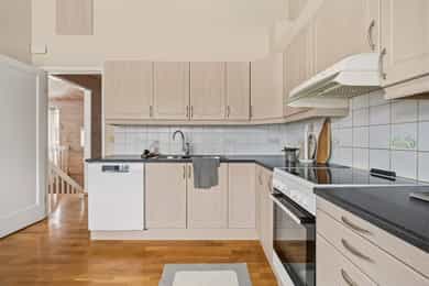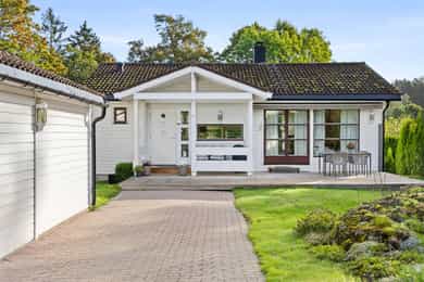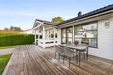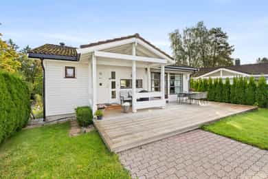 Familievennlig enebolig over to plan med solrike uteområder. Garasje. Rolig blindvei med nærhet til skole/barnehage.