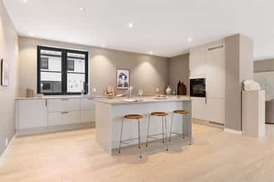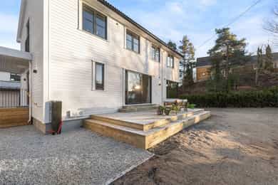 Velkommen til din nye drømmebolig på Jar! Nordvik har gleden av presentere et flott boligprosjekt bestående av en innholdsrik og stor enebolig med et moderne og særpreget utrykk. Dette vil bli en lys og tiltalende bolig med gjennomgående høy standard. Moderne og tidsriktige farge- og materialvalg blir benyttet i hele boligen. Åpen, sosial, og innholdsrik planløsning, med mange bruksmuligheter. Boligen vil gå over 3 etasjer, ha store og flotte oppholdsrom, god kjøkkenløsning, delikate bad og solrike uteplasser i tilbaketrukne omgivelser. Planløsningen er nøye gjennomtenkt og det er lagt stor vekt på funksjonalitet og kvalitet. Ferdigstilles og klar for overtakelse i februar 2026 Høydepunkter: - Flott arkitekttegnet enebolig - Innholdsrik og funksjonell planløsning - Romslig og solrik hage - 280 kvm - Moderne og særpreget utrykk - Høy standard - Kvalitetsmaterialer - Vannbåren varme i u. og 1. etg. - Balansert ventilasjon - Kjøkkeninnredning fra Sigdal - 1-stavs eikeparkett - Bricmate Beige og Brismate Ivory fliser - Hybelmulighet i underetasje - 4/5 soverom - 3 bad + toalett + vaskerom - Kjellerstue + loftstue - Dobbelgarasje - Ladeboks, kabel og sikring kan leveres som tilvalg - Lagringsplass i innvendig bod - Naturskjønne og familievennlig omgivelser - Gangavstand til Grav barneskole - Kort vei til Jar-huset, Bekkestua og CC-Vest - Kun få min gange til offentlig kommunikasjon (T-bane og buss) Hvorfor nybygg? - Du får tilpasset boligen etter eget behov - Gode og moderne løsninger - Tidsriktig, funksjonalitet og kvalitet - Boligen er i forskriftsmessig stand med 5 års reklamasjonsfrist - Det er svært lite vedlikeholdskostnader i nær framtid - Lavere kjøpsomkostninger - Mulighet for endringer/tilvalg - skap ditt eget drømmehjem! Beliggenhet Eiendommen ligger i et meget barnevennlig, rolig og attraktivt boligområde, hovedsakelig bestående av villabebyggelse. Det er flere skoler og barnehager i nærområdet, både Grav barneskole som ligger i kort gangavstand fra boligen, samt Steinerskolen på Grav og den internasjonale skolen på Bekkestua, alle i gangavstand fra boligen. Fra eiendommen er det gangavstand til skoler, butikker og offentlig kommunikasjon. Nærområdet byr også på fine turmuligheter ved Tjernsrudtjernet og Jarmyra Servicetilbud: Nærhet til både Bekkestua, Jar og Stabekk. Dagligvarehandelen kan gjøres på Meny Jarhuset eller ved Meny, Rema 1000, Coop Mega eller Kiwi på Bekkestua. Bekkestua byr på en rekke fasiliteter, forretninger og servicetilbud, med bl.a. nye Bekkestua senter. På Bekkestua finner du bl.a. flere store matbutikker, apotek, SATS, flere restauranter/cafeer, flotte klesbutikker, blomsterbutikk, vinmonopol, legesenter, tannlege, bank og mye mer. I 2015 åpnet Samson (i det gamle Mc Donalds bygget) som ga hele torget et løft. De holder åpent fra tidlig om morgenen med mulighet for å få kjøpt ferskt brød, eller en bolle til kaffen, og på kvelden som restaurant med fantastisk stenovnsbakt pizza. For kunstinteresserte er det flere gallerier i området, og kulturhuset Stabekk er i umiddelbar nærhet. På Stabekk finner du i tillegg kulturhuset Stabekk kino og den anerkjente livsstilbutikken Bolina, et interiørmekka som absolutt er verdt et besøk. Videre finnes bl.a. dagligvareforretning, apotek, interiørbutikker, bakeri, kulturhus samt flere hyggelige kafeer og restauranter. Ønsker man ytterligere tilbud ligger både Høvik, Lysaker, Sandvika Storsenter og populære CC Vest på Lilleaker innen rekkevidde. Aktivitet og fritid: Det er gode tur- og rekreasjonsmuligheter i nærområdet med bla. Jarmyra, der det er løpetraseer, treningspark med apparater og kunstgressbane. I nærområdet finnes det også et meget godt og variert utvalg av fritidsaktiviteter med bl.a. fotball-løkker, skøytebane, sandvolleyballbane, ny tennishall, Jar idrettshall, svømmehall på Nadderud og flere treningssentre. I tillegg er det kort avstand til Stabekkbanen - Stabæk Idrettsforenings hjemmebane. Stabekkbanen brukes til fotball om sommeren og bandy om vinteren. Sommerstid er banen gruslagt, og siden 2001 har den hatt kunstis i vintersesongen. Det er mange idrettslag i nærområdet (ØHIL, Stabæk og Jar) som tilbyr både fotball, håndball, langrenn, alpint, bandy, ishockey, tennis m.m. Kun en kort kjøretur unna ligger Bærumsmarka, som byr på milevis med flotte turstier, sykkelveier og preparerte skiløyper, samt badevann og gode rekreasjonsmuligheter. Det er for øvrig ikke lange veien til Kolsås skisenter for de som foretrekker alpint. Det er dessuten kort vei til bl.a. Holtekilen, som er et godt utgangspunkt for flotte turmuligheter, enten til fots eller med sykkel samt godt tilrettelagt for barnevogn. Holtekilen byr på flotte friområder, idylliske naturreservat, parker og fine badeplasser. For de golf- interesserte finner man Ballerud Golf, som ligger kun 6 min. med bil unna boligen. Offentlig kommunikasjon: Eiendommen ligger ypperlig til med tanke på offentlig kommunikasjon, med hyppige avganger til og fra hovedstaden. På Jar stasjon, som ligger ca. 7. min. gange unna, er det T-bane forbindelse med linje 3, samt Blåtrikken som tar deg langs Oslo vest og ned til Aker Brygge. Bekkestua er også knutepunkt for offentlig kommunikasjon for T-bane til sentrum og bussforbindelser i alle retninger inkludert flybussen. Barnehager og skoler: Eiendommen sokner til Grav skole som ligger i kort gangavstand fra boligen (ca. 7 min), og Bekkestua ungdomsskole. Steinerskolen og Oslo International School ligger også i kort avstand fra eiendommen. Det finnes flere videregående skoler i nærliggende områder, samt et godt utvalg av både private og kommunale barnehager.