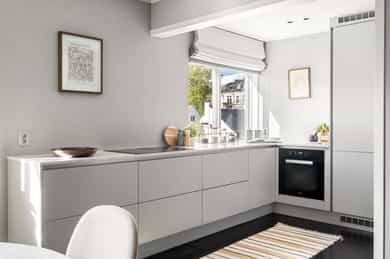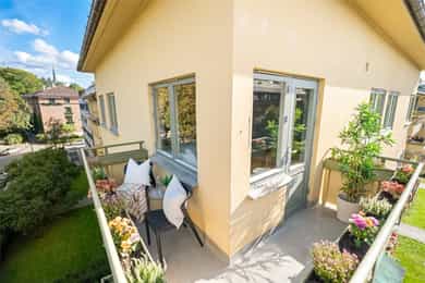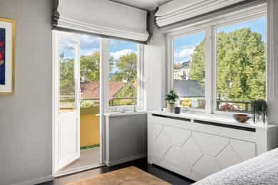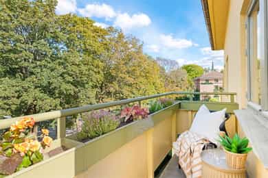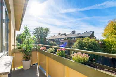 Fantastisk 3-roms topp-/hjørneleilighet med solrik balkong på 6 kvm - VV/fyring ink. - Baderom 2022 - Peis - Garasjeleie