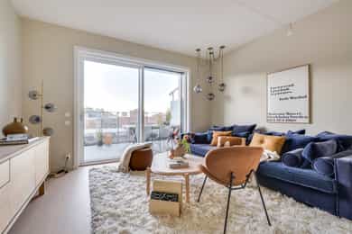 Eksklusiv 5-roms toppetasje over to plan! To nydelige uteplasser | To bad | Ettertraktet beliggenhet