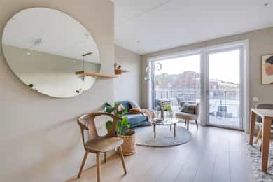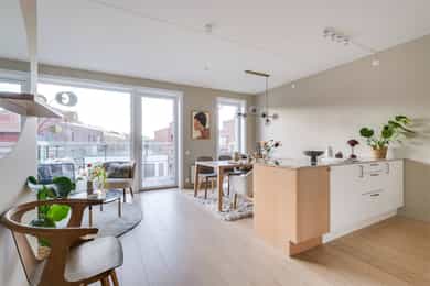Silje M. Johansen ved Nordvik har gleden av å presentere en sjelden mulighet i Rostockgata 50! En unik 5-roms selveierleilighet med en fantastisk beliggenhet i et moderne bygg fra 2020. Leiligheten går over to plan bestående av 8.etg som inneholder kjøkken, stue, to soverom og bad og 9.etasje som inneholder stue og soverom tilknyttet eget bad. Boligen har en sentral, men samtidig rolig og tilbaketrukket beliggenhet i Bjørvika. Kvaliteter det er verdt å merke seg ved boligen: