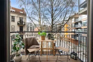 • Solrik balkong med sol fra ca. 10-1430 om sommeren