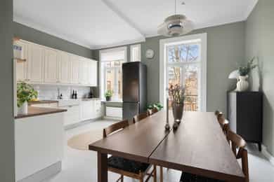 Svært attraktiv og klassisk 4-roms selveierleil. Balkong. Frodig bakgård. Peis. God takhøyde. Garasje*. Rosett/stukkatur