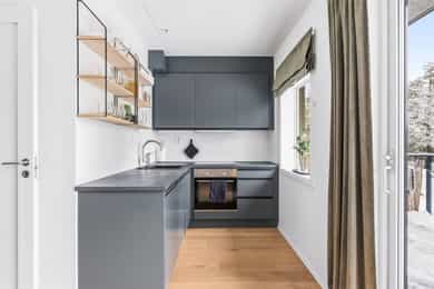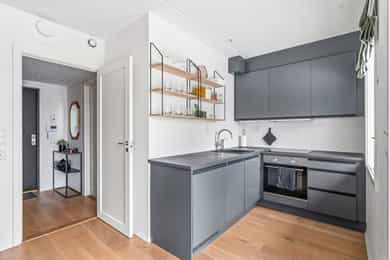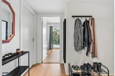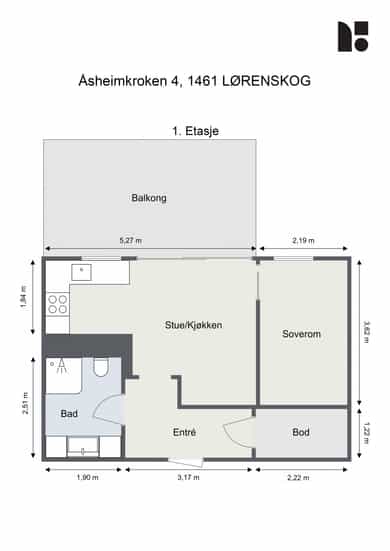 Velkommen til Åsheimkroken 4, presentert av Magnar Steen i Nordvik Bolig! Dette er en strøken 2-roms selveierleilighet med god standard fra 2022 - her kan du flytte rett inn! Boligen rommer entré, åpen stue-/kjøkkenløsning, bad og soverom, samt en praktisk bod. Fra stuen er det utgang til en herlig balkong på 13 m² vendt mot skjermede omgivelser. Beliggenheten er attraktiv på Rasta i Lørenskog. Her ligger man sentralt, men samtidig tilbaketrukket til. Det er kort gangavstand til bussholdeplass, gode turmuligheter, Triaden storsenter og mye mer. Verdt å merke seg: - Integrerte hvitevarer - Stue og kjøkken i åpen løsning - Lekkert baderom med gulvvarme - Innvendig bod og romslig sportsbod i underetasje - Ca. 18 minutter reisetid til Helsfyr med buss