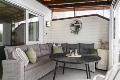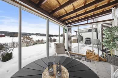 Gode solforhold hvor du kan ha morgenkaffen på østvedt uteområde med utgang fra kjøkkenet, samt optimale solforhold på ettermiddag og kveld mot jordet.