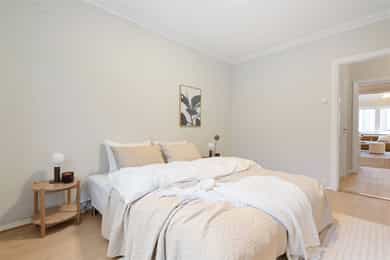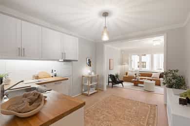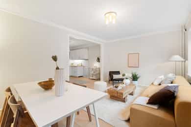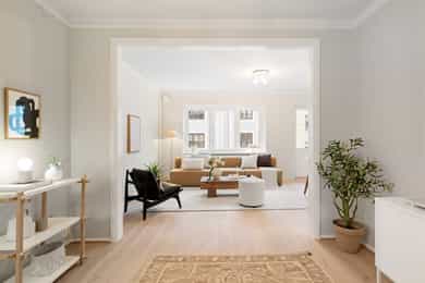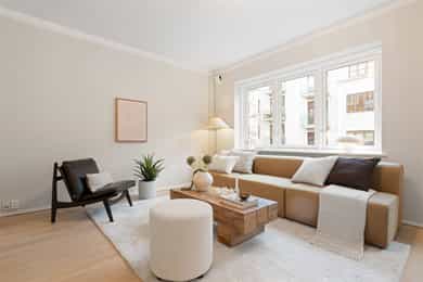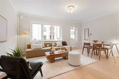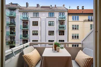 Svært attraktiv og innbydende 3-roms med flott, skjermet beliggenhet på populære Adamstuen. Balkong - Gjennomgående