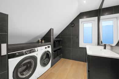 - Det er installert egen kurs for vaskemaskin og tørketrommel på bad