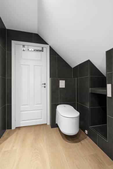 - Det ble i forbindelse med renovasjon av badet satt opp et provisorisk toalett i kjelleren med avløpspumpe. Denne er fullt brukbar men rommet den står i er ikke et godkjent toalettrom.