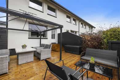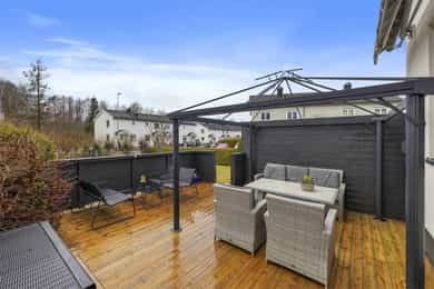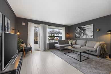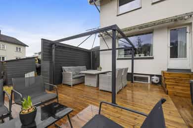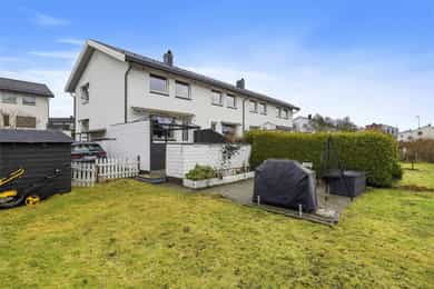 Pent enderekkehus med 3 soverom og flott uteområde. Sentral og barnevennlig beliggenhet med gangavstand til alt.