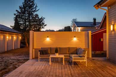Gode solforhold på terrassen. Den er sørvendt. Sol fra morgen til kveld på terrasse.