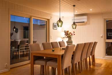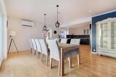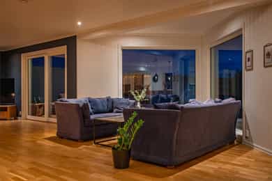 Velkommen til Verningenveien 8! I Verningenveien 8 finnes en unik enebolig. Store vindusflater ut mot terrassen, som skaper en luftig atmosfære i hjemmet. Stor terrasse med gode solforhold. Terrassen er sørvendt, som får mye sollys og varme, spesielt fra midt på dagen og utover ettermiddagen. Her kan man nyte sene kvelder. Eneboligen er svært familievennlig. Trippel garasje er satt opp i 2023. Uthus med plass til mye oppbevaring. Boligen ligger like ved Sporty anlegget. Der finner man fotballbane og klubbhuset. 5 minutters gange til sportsanlegget. Høydepunkter: - Trippel garasje - Huset er et nyere bygg fra 2016 - Stor sørvendt terrasse - Uthus med mye plass til oppbevaring - Store vindusflater med solskjerming - Gode solforhold - Montert el-billader - Familievennlig Velkommen!